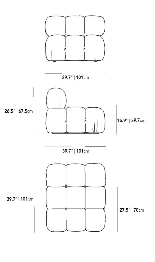 Marshbello is made to move with you. Its modular components connect seamlessly through discreet zippers, ensuring each configuration remains secure and refined. When it’s time to rearrange, the pieces release with ease—designed for flexibility without compromise.