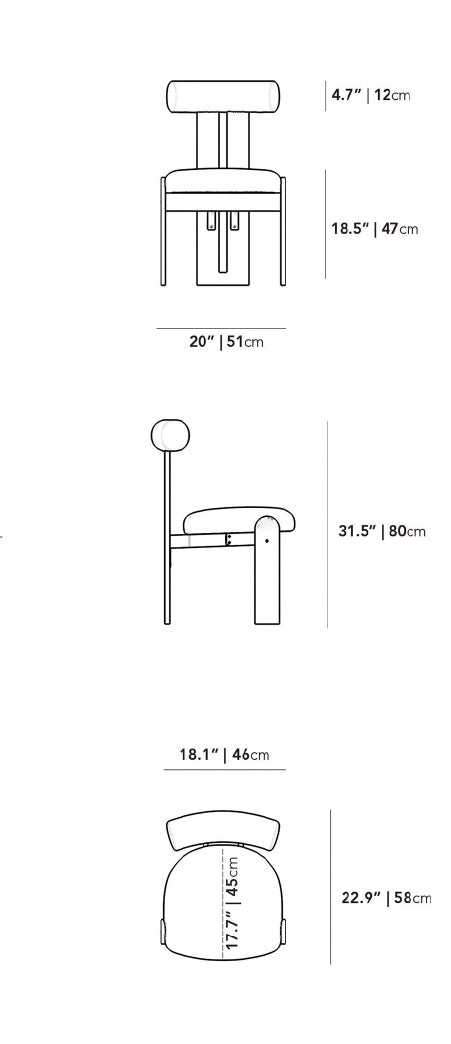 - Seat Height: 18.5 in (47 cm)