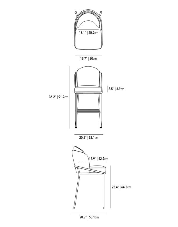 The timeless silhouette of the Angelo Counter Stool exudes luxury within the home. Sleek powder coated legs wrap around a full and accommodating seat and backrest filled with premium high density cushioning. Angelo's chic ambiance encourages a leisurely and indulgent dining experience, adding to your homes overall aesthetic. Bring Italian inspired design home with this modern piece available in your choice of premium upholstery.