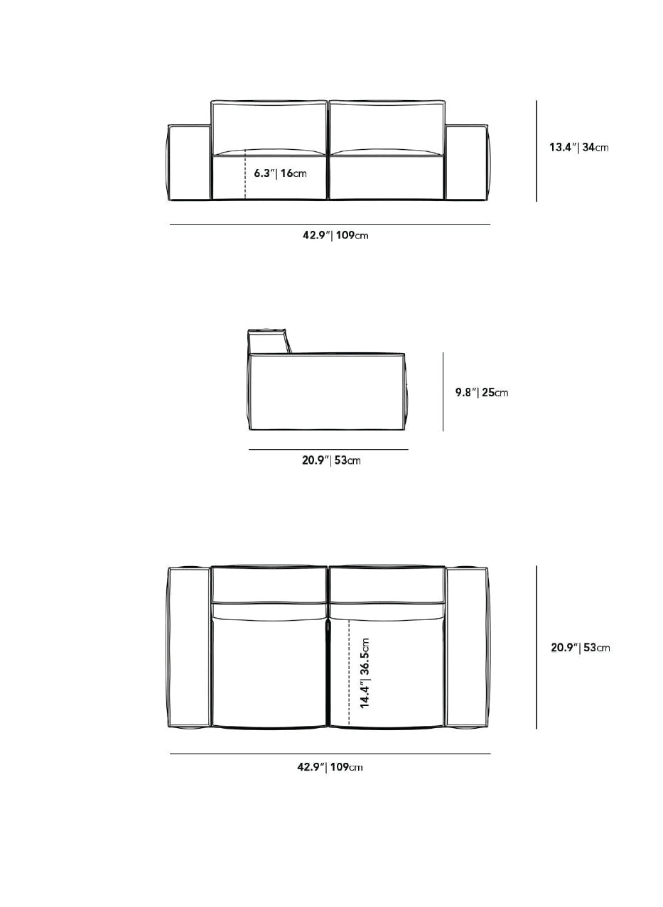 • Product: 42.9 x 20.9 x 9.8 in (109 x 53 x 25 cm)